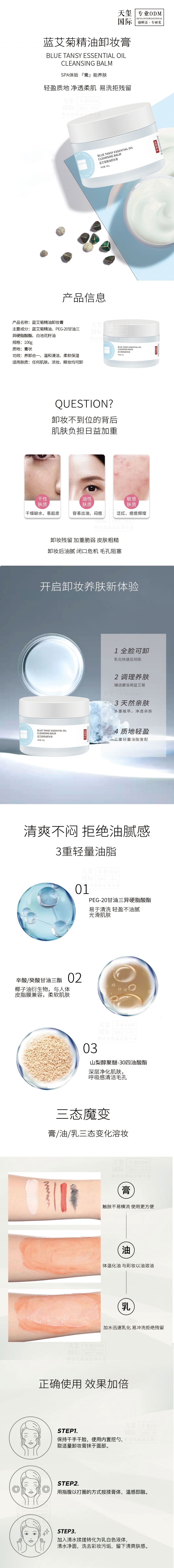 甄选摩洛哥蓝艾菊,调理养肤;乳化快速且彻底,多重植萃,净透亲肤;3重轻量油脂,清爽不闷