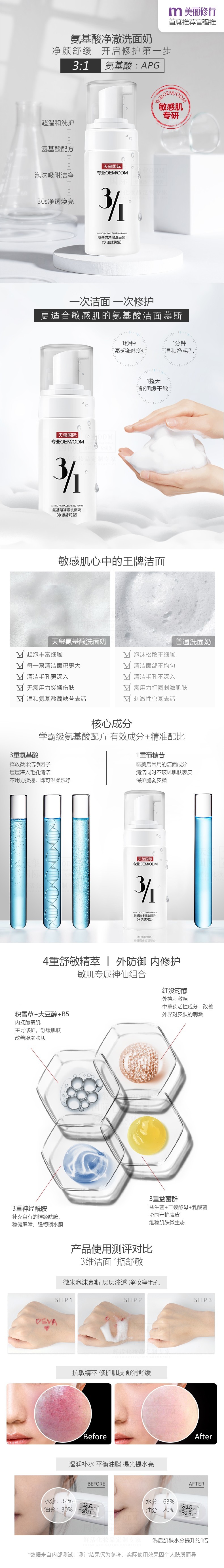 敏感肌专研,氨基酸温和洗护;气泡丰富细腻,温和氨基酸葡糖苷表活;4重舒敏精萃,外防御,内修护