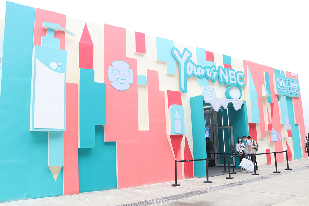 在上海美博会户外独立展馆NVIP2,诺斯贝尔化妆品股份有限公司(以下简称“诺斯贝尔”)以“Young NBC”为主题,延续企业绚丽多彩的主基调,用缤纷的几何组合、代表性的产品图案构成了个性新潮的展馆形象,为现场群众展现了诺斯贝尔的创新与活力。