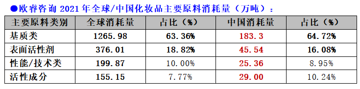 化妆品原料消耗量与分类情况