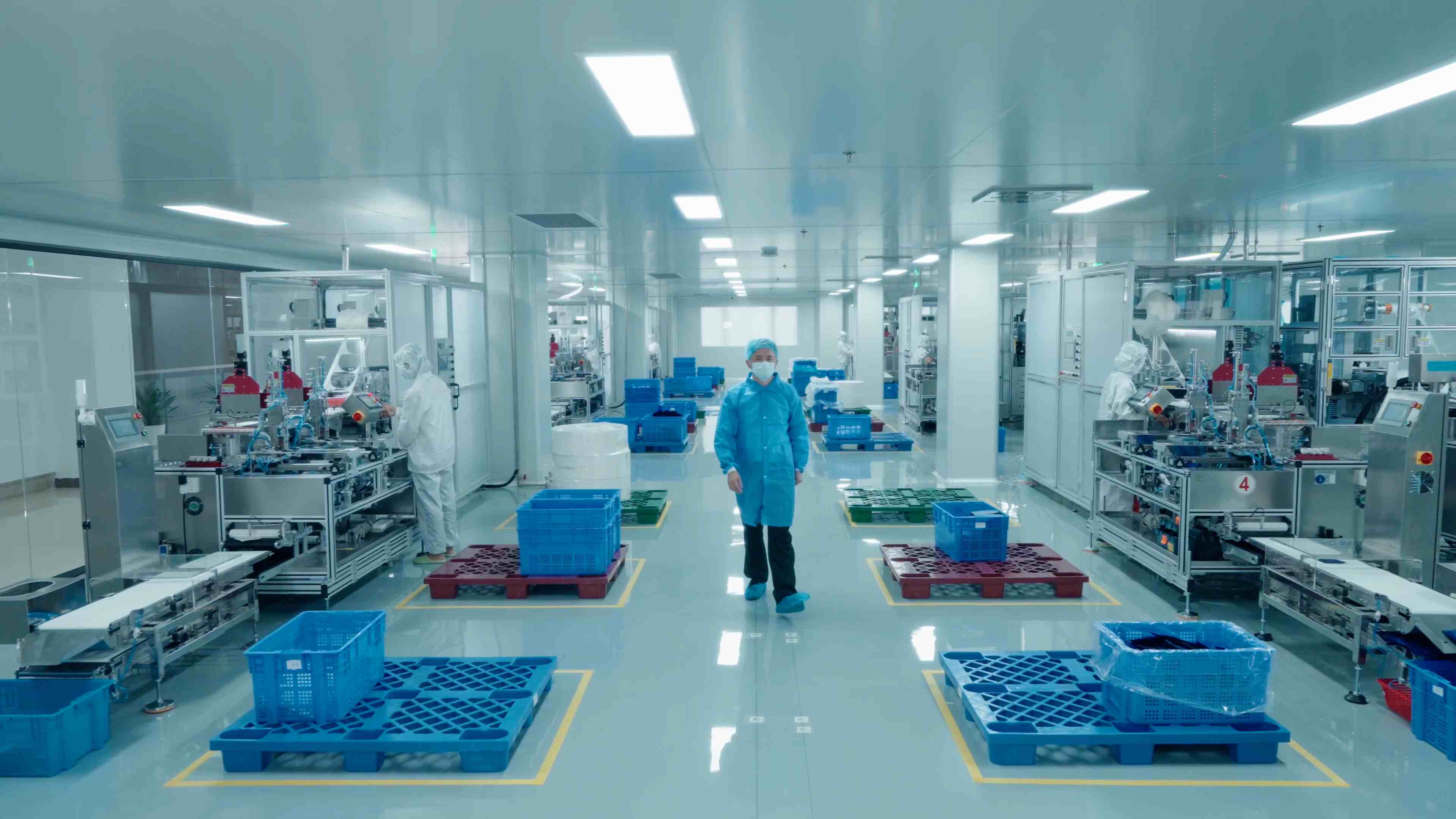 该车间下设有10万级洁净车间,58条膜布定制“零污点、零空袋”智能生产线,生产过程引入多台AGV机器人小车,由MES系统全程中控。折叠日产能可达580万片(套),月产能将近1.5亿片(套),可满足国际一线和国内一线大牌等目标客户最严苛的品质要求,并为其提供稳定、可靠的产能支持。