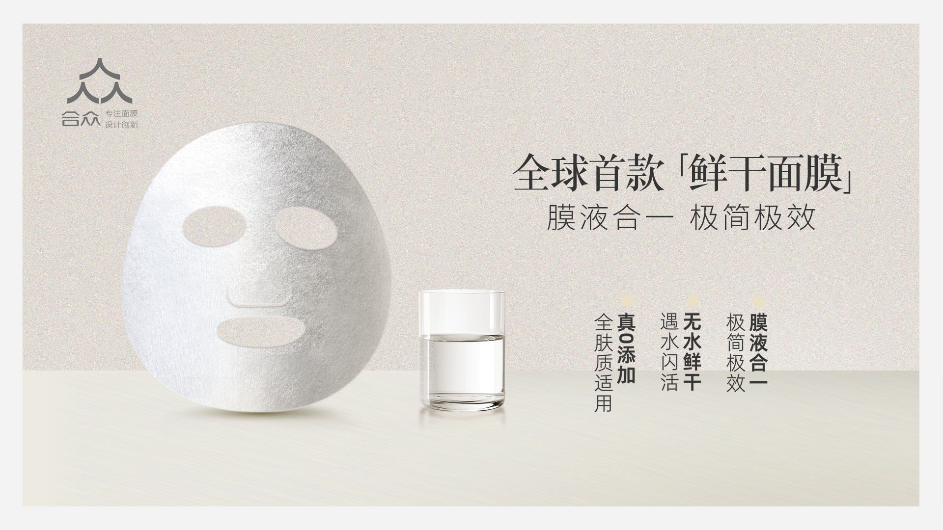 而合众集团专注膜布创新20多年,也清楚意识到,中国面膜市场的增长虽有放缓,但面膜依旧是化妆品领域表现最好品类之一。所以自2015年起,合众集团就深入市场调研面膜品类存在的痛点,后经过团队历时多年钻研,终于推出全球首款“自带功效,遇水闪活”的“合一·鲜干面膜”。